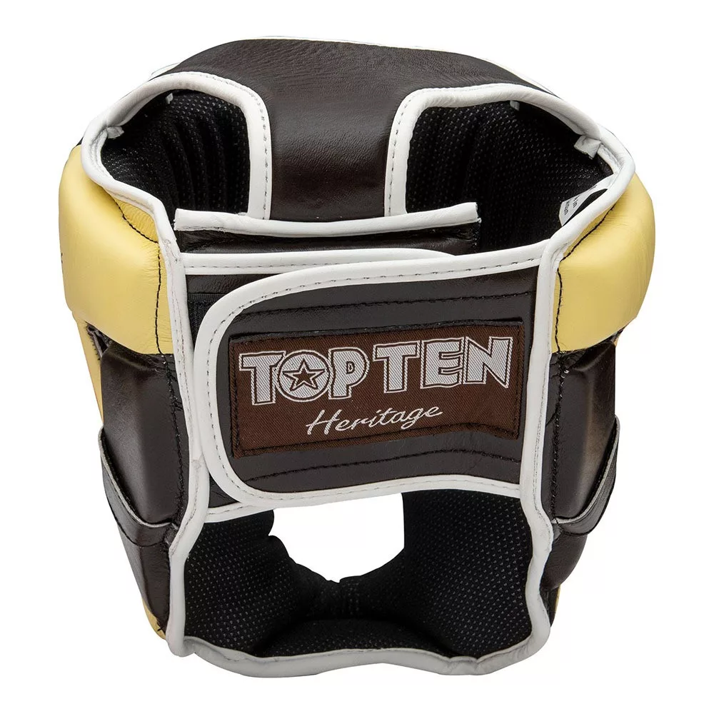 Az ismert és elismert TOP TEN márka prémium tulajdonságú és minőségű fejvédője, amely maximális védelmet nyújt a box- és küzdősportolóknak. A speciálisan megtervezett, puha marhabőrből készült védőfelszerelés komfortos érzést nyújt, míg az izzadtság elvezetéséért a „Jayzee-Tech” különleges nedvszívó anyaga felel.