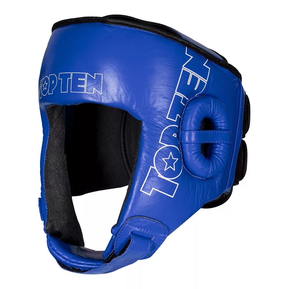 Az IFMA "Jarot Muay" fejvédő koponyakapszulája extra biztonságosan van rögzítve, így a fejre érkező ütések nem tudnak letéríteni az útról. A TOP TEN az IFMA fejvédelem esetében az akadálytalan látótérre támaszkodik a jó kilátás érdekében. Az előre mélyített homlokterület jól lefedi a halántékokat.