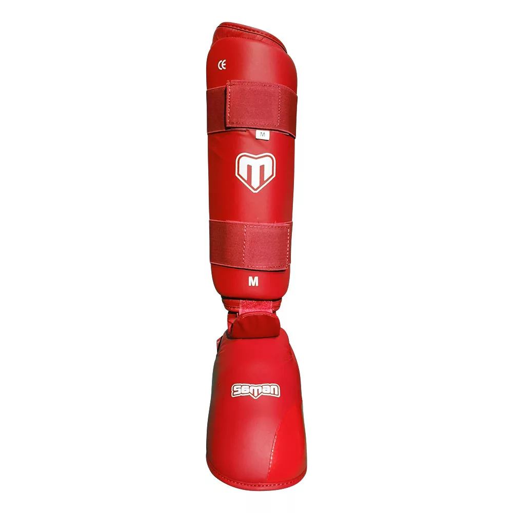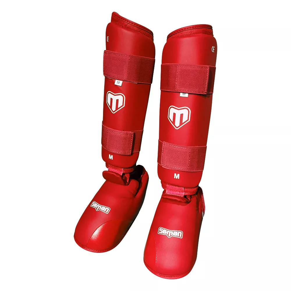 Karate Lábszárvédő lábfejes, Saman, Competition 40, piros, XS