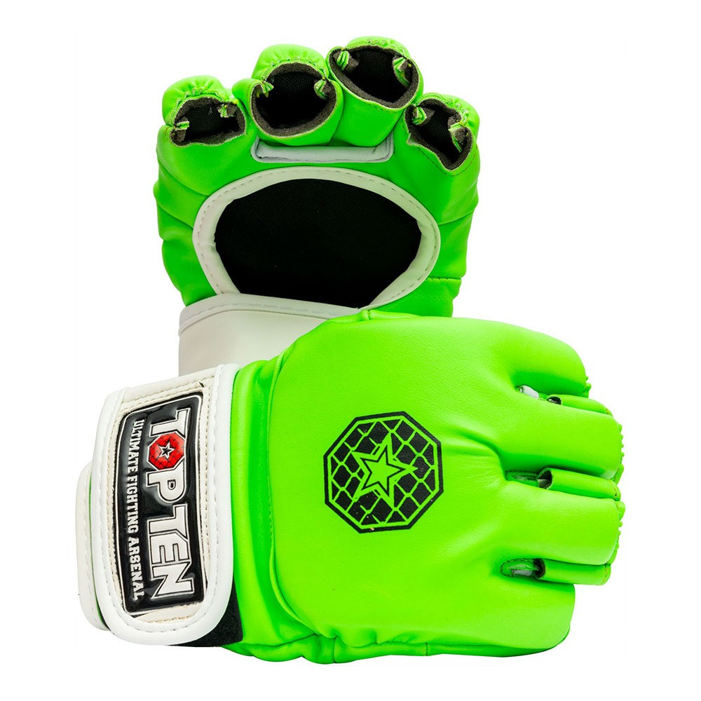 A Top Ten MMA-hoz gyártott kesztyűje, az ütőfelület 100% bőrből készült szabad ujjvégekkel.