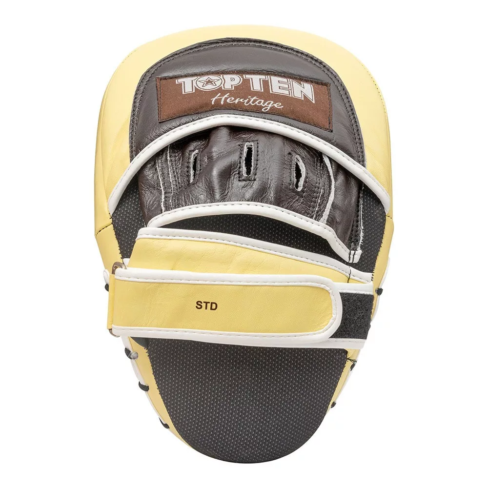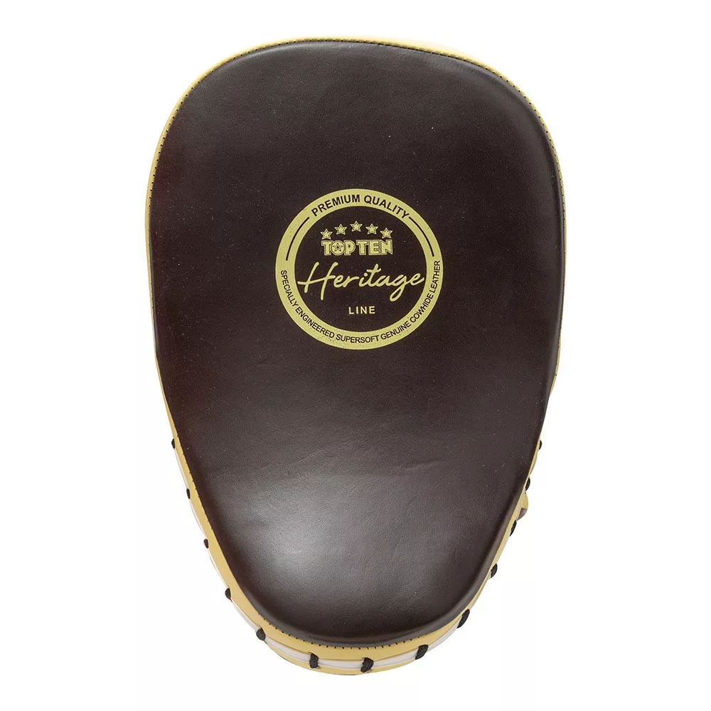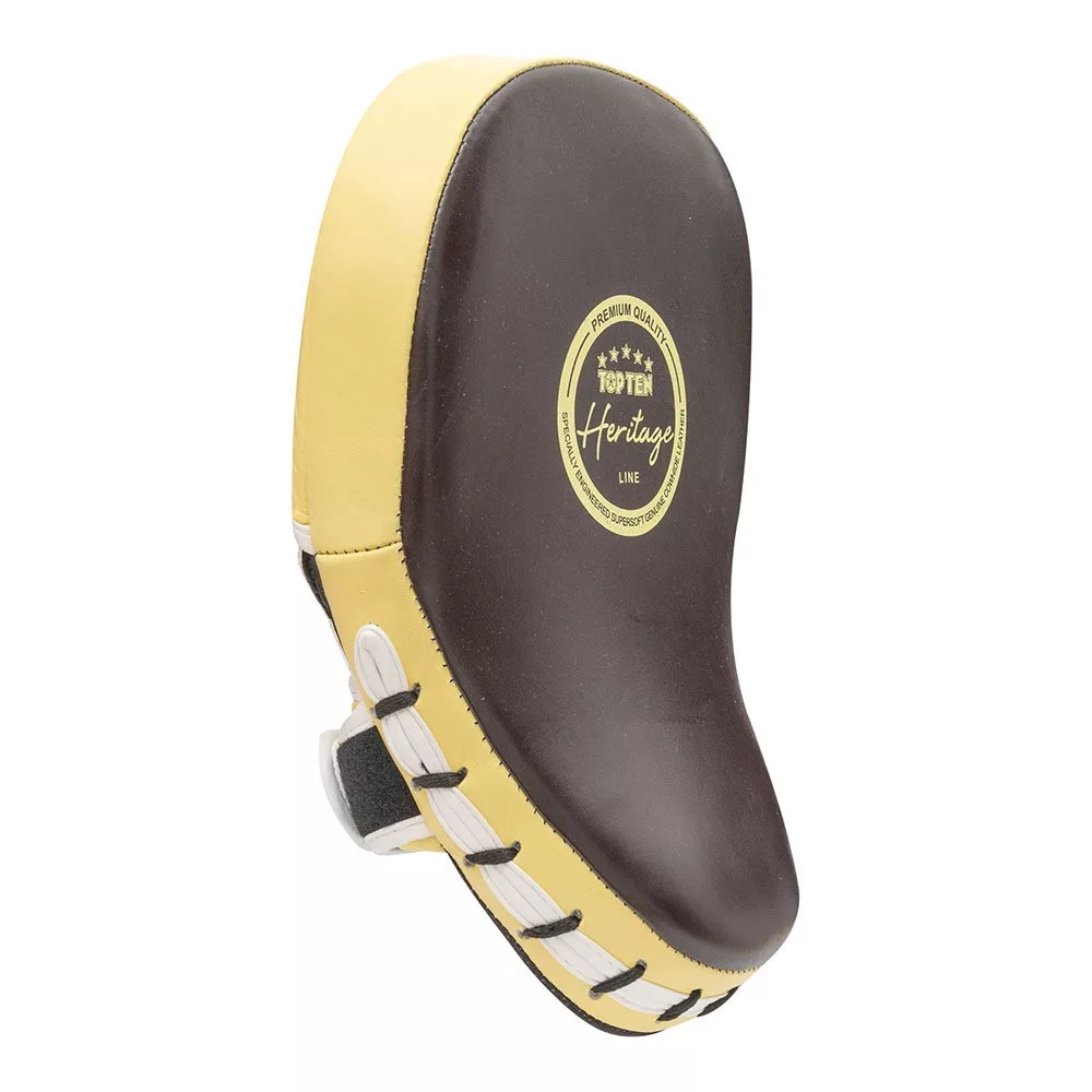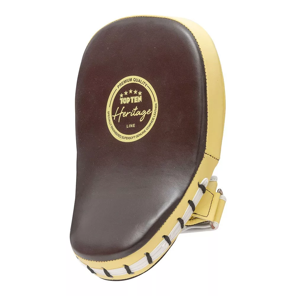 A Top Ten Heritage pontütők a csúcsminőséget képviselik. Prémium alapanyagainak köszönhetően szinte elnyűhetetlen. Speciális, hajlított kialakítása révén biztosítja viselőjének az extra stabilitást és az ujjak védelmét. Kifejezetten MMA küzdősportot gyakorlók számára készült.