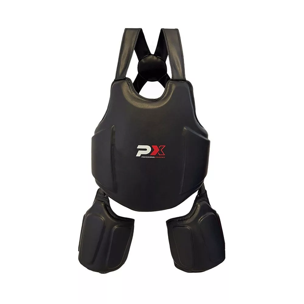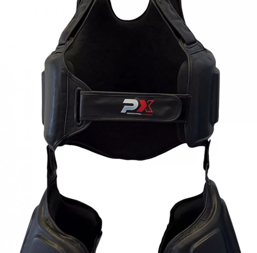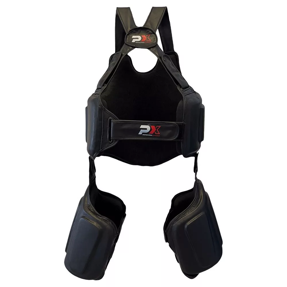 Nagy területen fedi le a test legérzékenyebb területeit, és magas szintű védelmet garantál. A tömörített többrétegű habból készült párnázást egy robusztus és könnyen kezelhető, szintetikus bőrből készült huzat zárja.