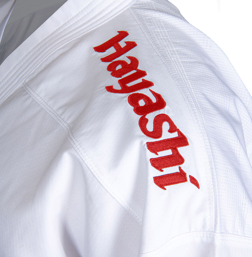 Karate ruha, Hayashi, WKF Green, Premium Kumite, piros hímzéssel, 185 cm