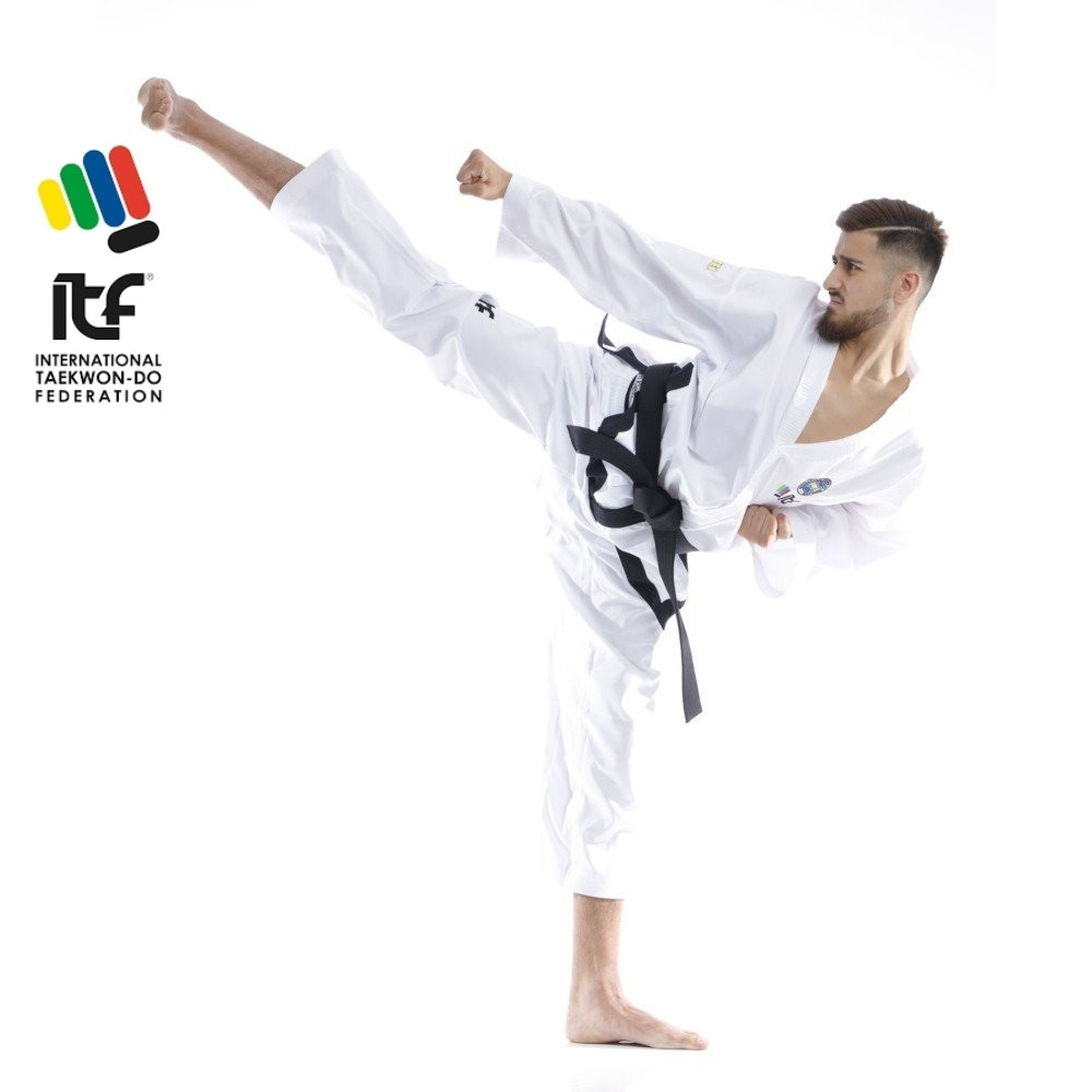 A Nemzetközi Taekwondo Szövetség (ITF) minden előírásának megfelelő ruházat.