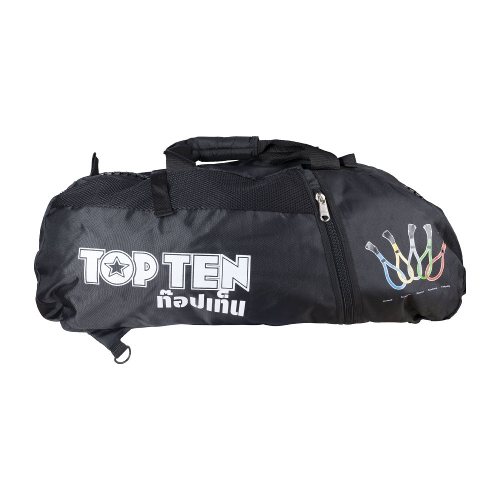 Mutasd meg környezetednek, hogy Thai Box harcos vagy és használd ezt a praktikus kombi sporttáskát a TOP TEN Aisun IFMA kollekcióból. Két különböző méretben készül számodra, hogy a felszerelés igényedhez alkalmazkodva választhass. Három különböző használati kombináció biztosítja számodra a szükséges kényelmet a könnyű szállításhoz. Kevesebb tartalomnál az „Aisun” gyorsan kéznél van a 2 rövid fogantyújának köszönhetően, míg a vállpántokkal lazán viselheted hátizsákként hosszabb távon hordva. Szintén hosszabb távra viselheted válladon átdobva a hosszú pánttal is. A túlméretezett cipzár vizuálisan kiemeli, meggyorsítja és egyszerűvé teszi a többfunkciós táska pakolását. Két hálós zseb az oldalán és egy belső cipzáros rekesz két részre osztva segít elrendezni felszereléseidet.