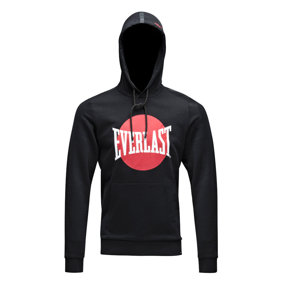 Everlast kenguru zsebes kapucnis pulóver férfiaknak. Pamut anyagának köszönhetően tartós melegítő viselet. Kapucniján megkötővel, mellkasán menő nyomott Everlast logóval.