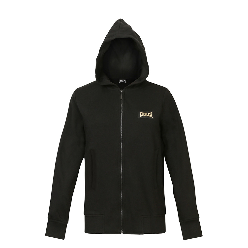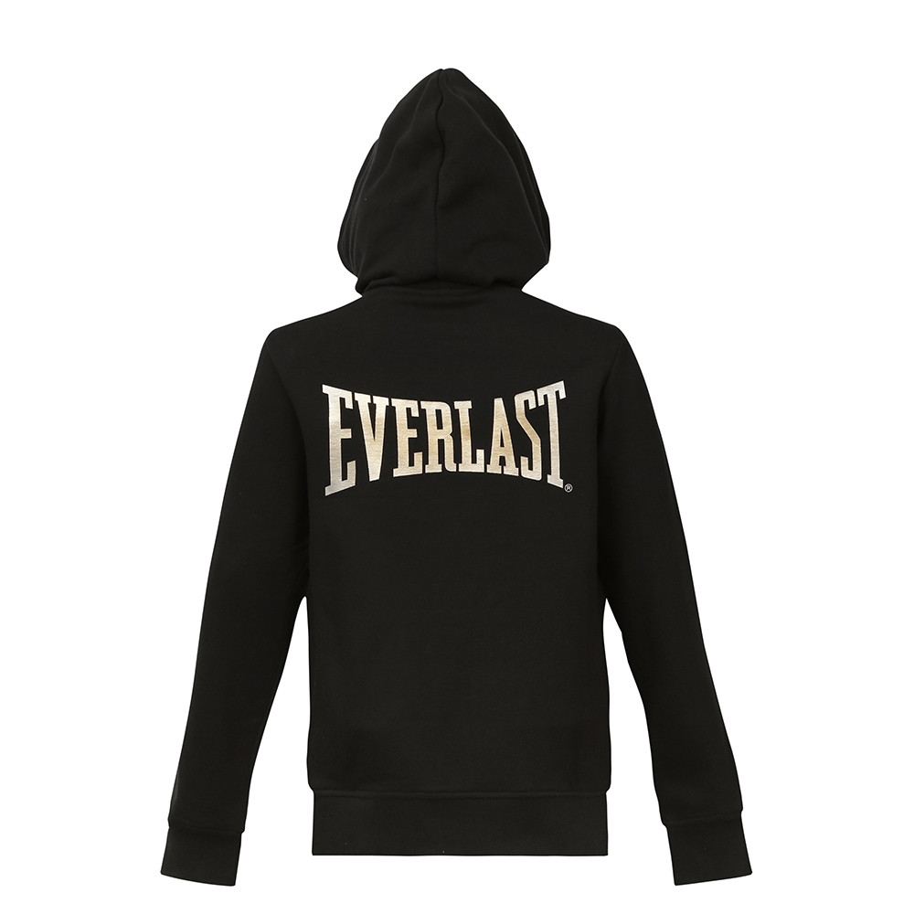 Everlast Leland 2 full cipzáras, dupla kenguru zsebes kapucnis pulóver nőknek, kapucniján megkötő zsinórral. Bal mellkasán és a jobb ujj alkar részén igényesen kidolgozott Everlast logóval, hátán a nyak résznél menő nyomott Everlast címkével. Ujjai végén és derekán széles passzéval.