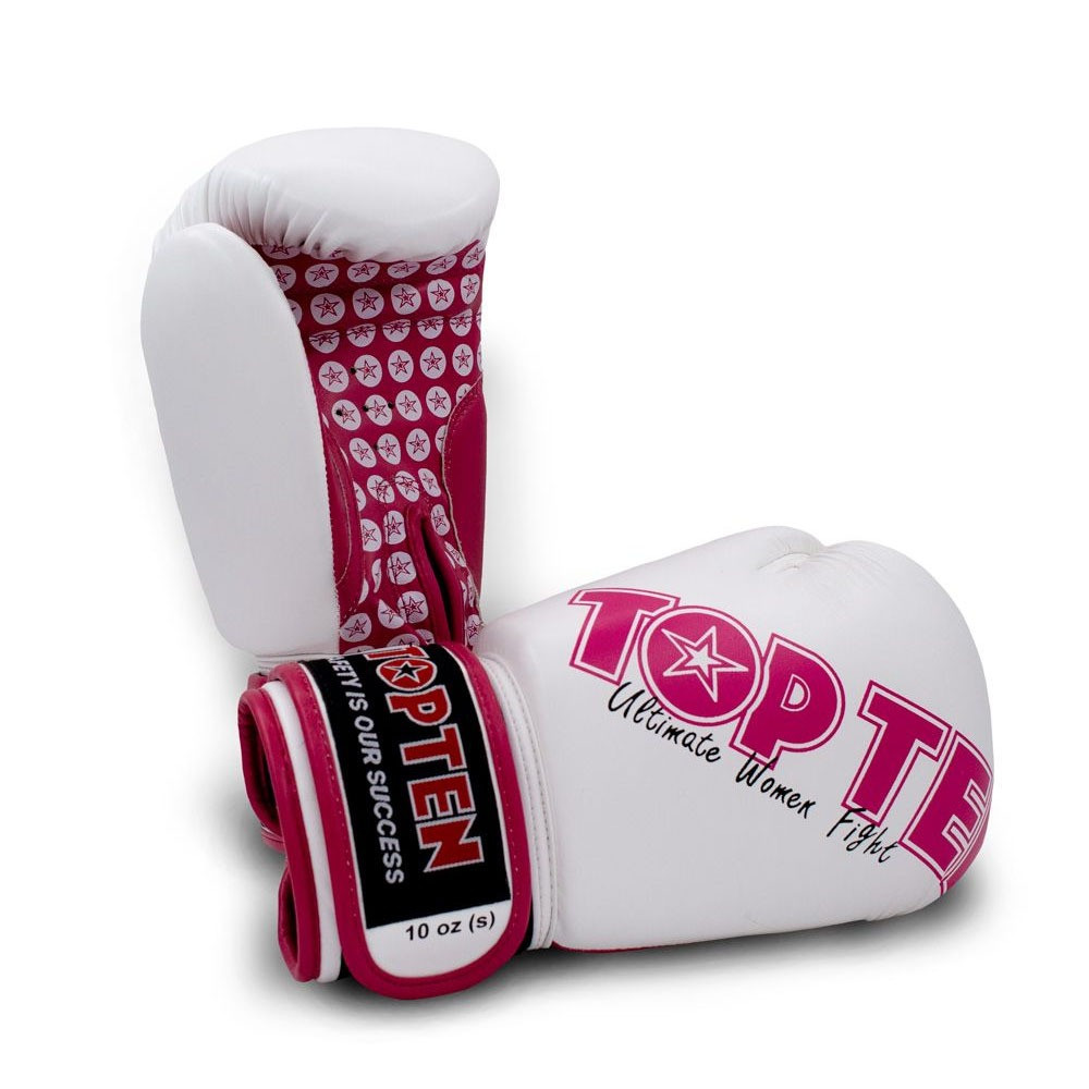 Boxkesztyű, Top Ten, Ultimate Women Fight, műbőr, Fehér-pink, 10 oz